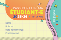 Tu as entre 12 ⎮NOUVEAU !⎮ et 26 ans ? Tu es étudiant·e ? Ce Passeport te permet d'accéder aux séances (hors événements) au prix de 6,00€ (au lieu de 9 €) ! Il est valable du 1er octobre 2025 au 30 septembre 2026.